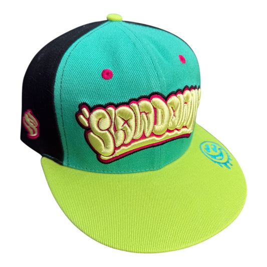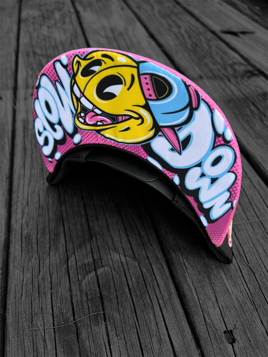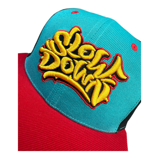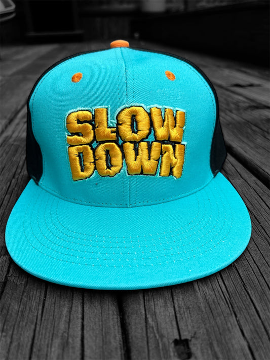 Slowdown Clothing's Snap back Hats are unique blend of art and fashion. Puff embroidery and under brim printing along with other details make these hats stand out.