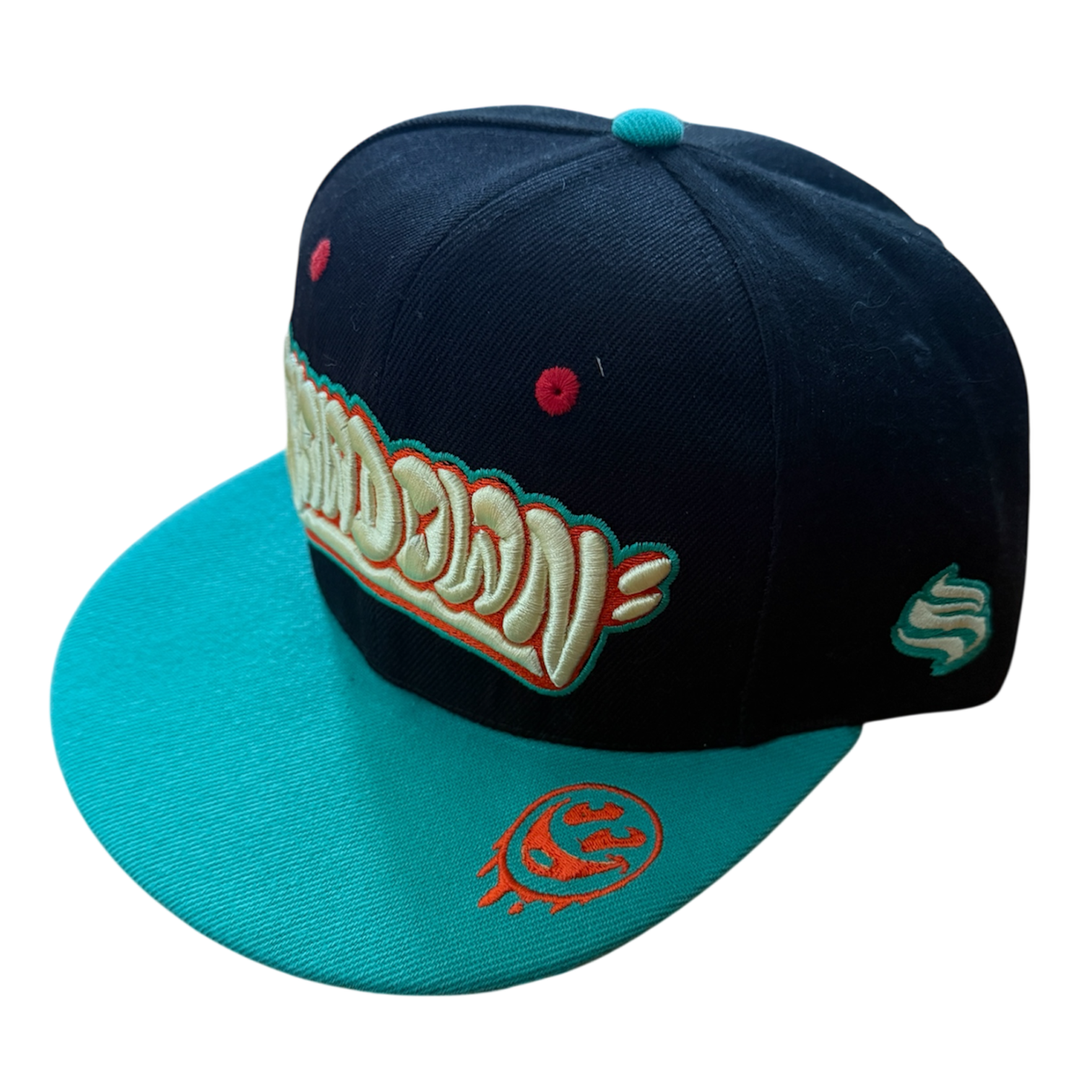 Featuring a custom bulldog design rendered in Tony Ciavarro's distinctive bubble graffiti style, this snapback cap combines artistic flair with practical functionality. The full-color underbrim print and embroidered front detail create a bold visual statement, while the adjustable snap closure ensures a comfortable fit for most head sizes. Versatile enough for any age, this piece merges wearable art with everyday utility.